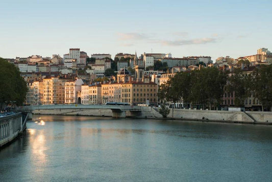 The Saone in Lyon I White Modern Wood Framed Art Print with Double Matting by Berzel, Erin