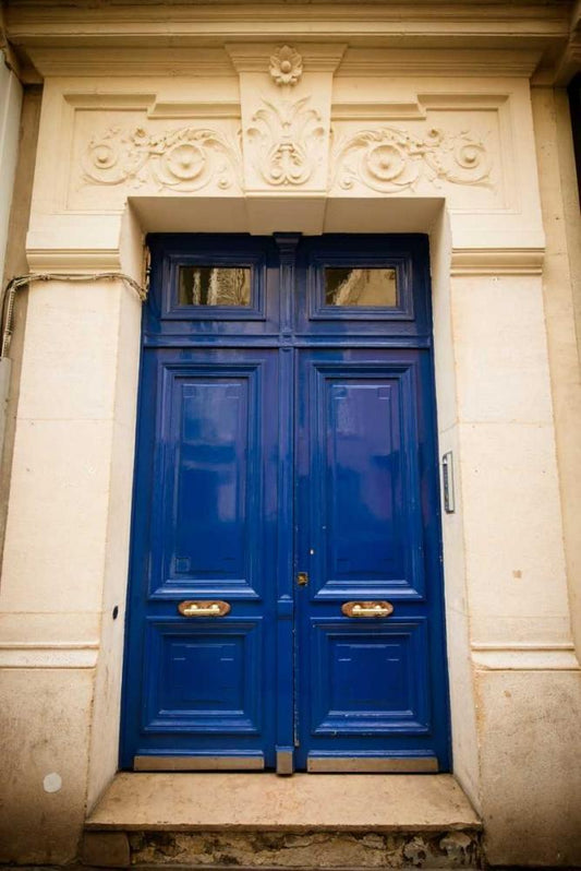 Blue Door in Paris White Modern Wood Framed Art Print with Double Matting by Berzel, Erin