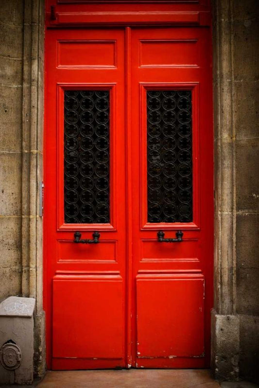Red Door in Paris White Modern Wood Framed Art Print with Double Matting by Berzel, Erin