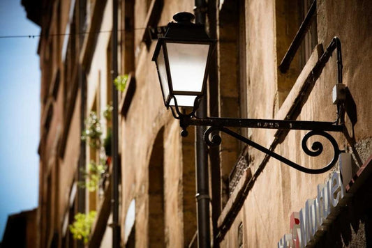 Street Lights in Lyon II White Modern Wood Framed Art Print with Double Matting by Berzel, Erin