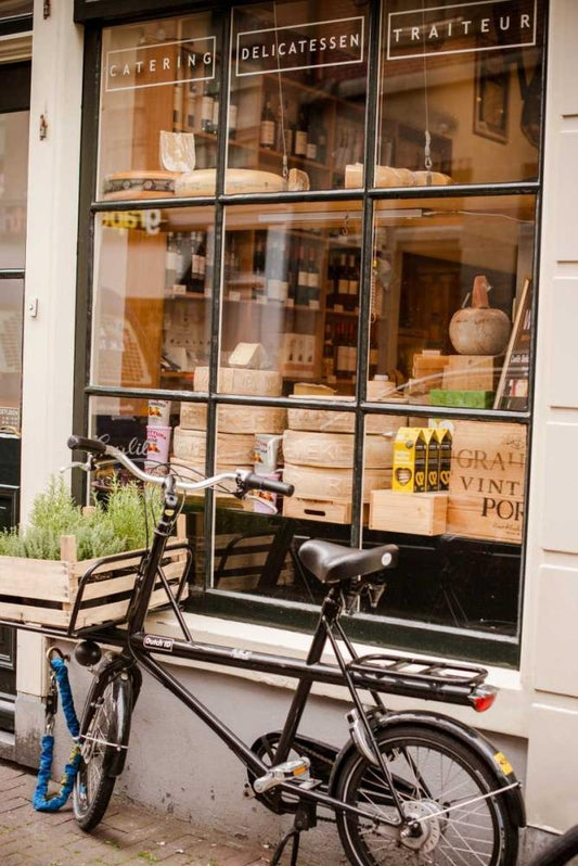 Amsterdam Delicatessen I White Modern Wood Framed Art Print with Double Matting by Berzel, Erin
