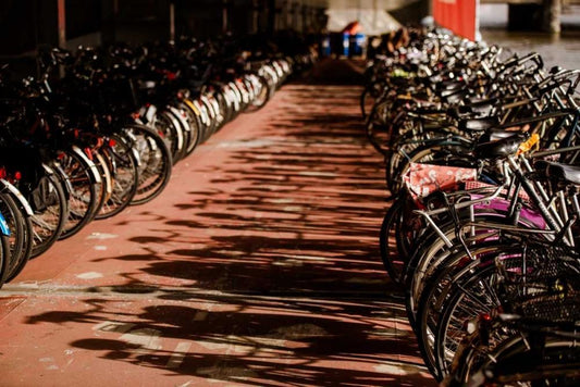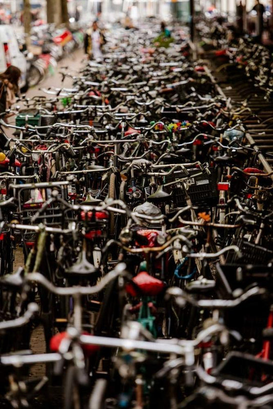 Bicycles at Centraal Station II White Modern Wood Framed Art Print with Double Matting by Berzel, Erin
