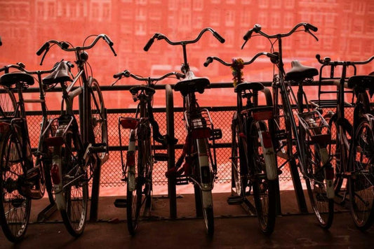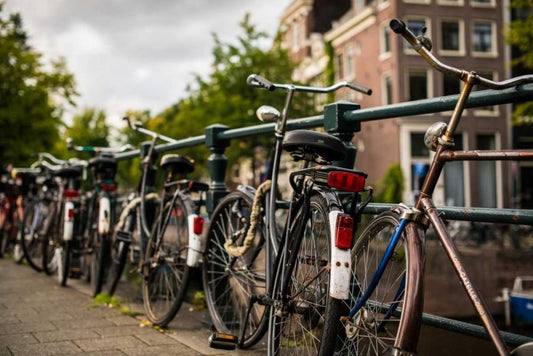 Amsterdams Fietsflat I White Modern Wood Framed Art Print with Double Matting by Berzel, Erin