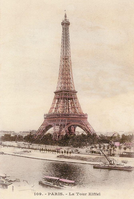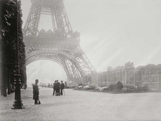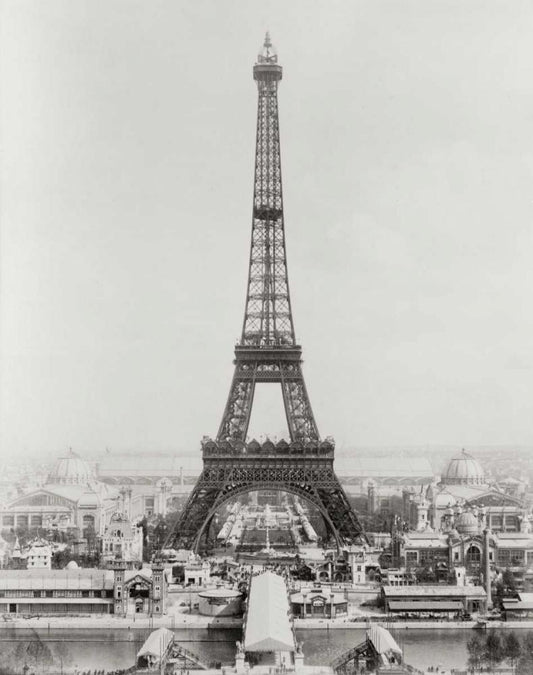 Vintage Eiffel Tower White Modern Wood Framed Art Print with Double Matting by Devereux, Sophie