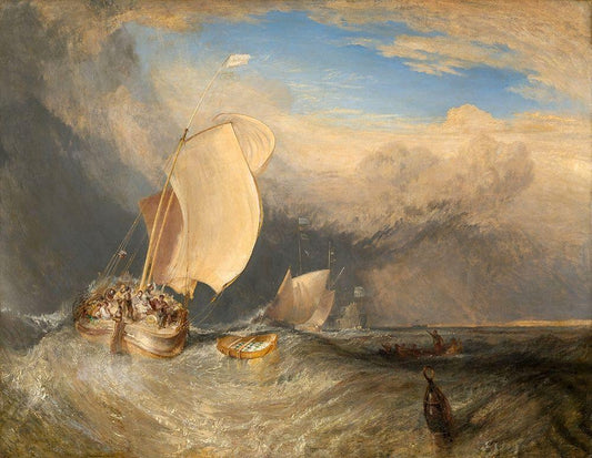 Fishing Boats with Hucksters Bargaining for Fish 1837 White Modern Wood Framed Art Print with Double Matting by Turner, Joseph Mallord William