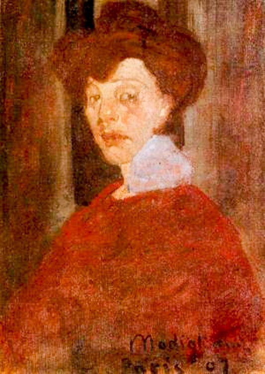 Portrat of Jeanne Hobuterne White Modern Wood Framed Art Print with Double Matting by Modigliani, Amedeo
