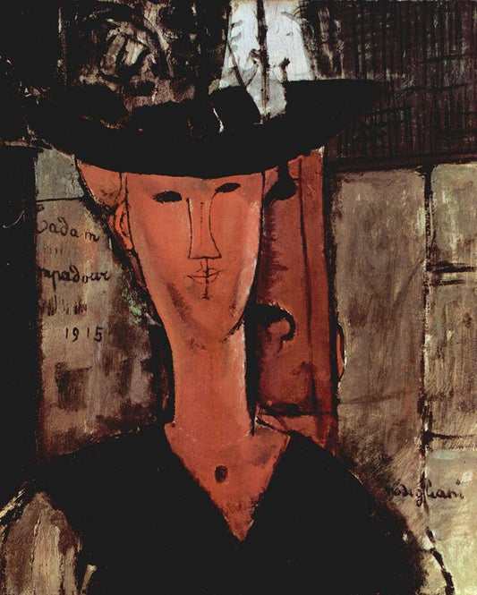 Lady in a hat White Modern Wood Framed Art Print with Double Matting by Modigliani, Amedeo