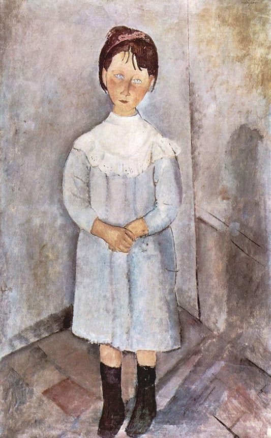 Little Girl in Blue, 1918 White Modern Wood Framed Art Print with Double Matting by Modigliani, Amedeo