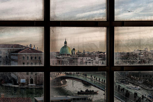 Venice Window Black Ornate Wood Framed Art Print with Double Matting by Marini, Roberto