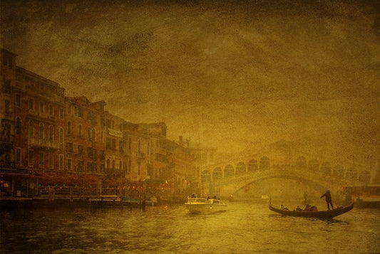 Rialto Bridge In The Mist Black Ornate Wood Framed Art Print with Double Matting by Dupont, Isabelle