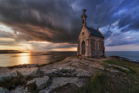 Le Phare De Ploumanach Black Ornate Wood Framed Art Print with Double Matting by Bogaerts, Sus