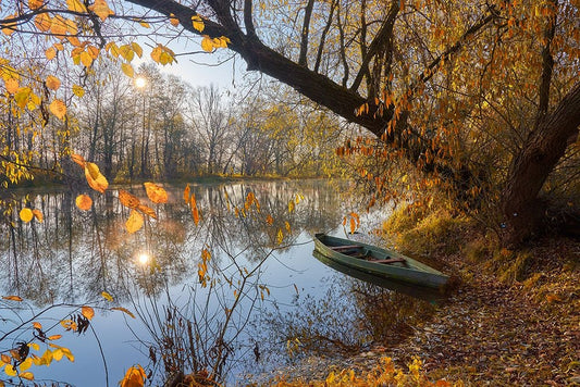 Golden Autumn Black Ornate Wood Framed Art Print with Double Matting by Kazun, Andrii