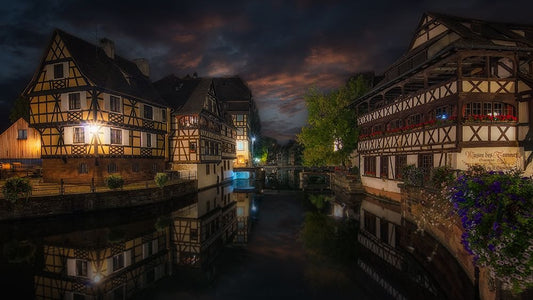 Le Petite France I Black Ornate Wood Framed Art Print with Double Matting by Lopez, Bartolome