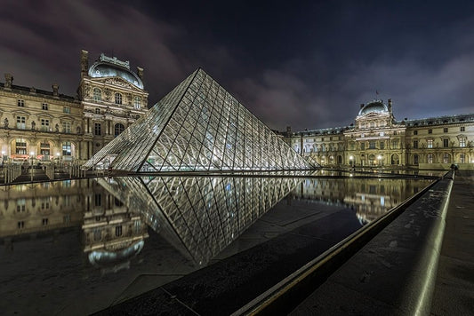 Paris @ Night Black Ornate Wood Framed Art Print with Double Matting by Benmoshe, Kobi