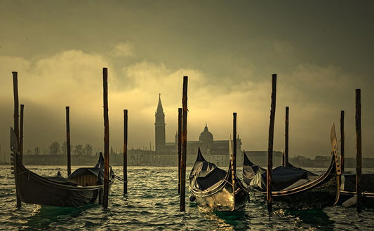 Gondola in the mist Black Ornate Wood Framed Art Print with Double Matting by Dupont, Isabelle