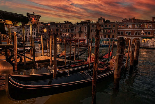 Gondolas of the Grand Canal Black Ornate Wood Framed Art Print with Double Matting by Andria, Miary