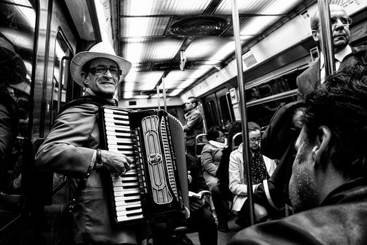 Music On The Subway Black Ornate Wood Framed Art Print with Double Matting by Fossella, Nicola