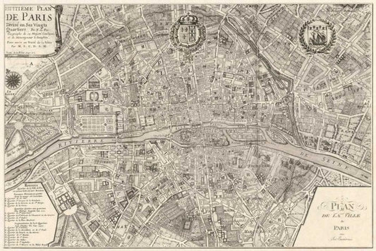 Plan de la Ville de Paris 1715 White Modern Wood Framed Art Print with Double Matting by De Fer, Nicolas