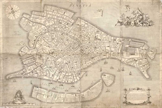 Citt di Venezia 1729 White Modern Wood Framed Art Print with Double Matting by Ughi, Ludovico