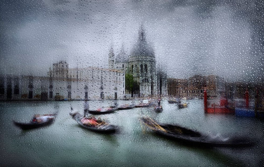 It Was Raining In Venice Black Ornate Wood Framed Art Print with Double Matting by Osuna, Fran