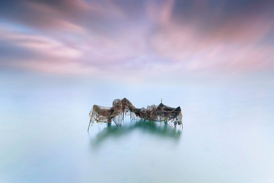Netfish Black Ornate Wood Framed Art Print with Double Matting by Guerola, Joaquin