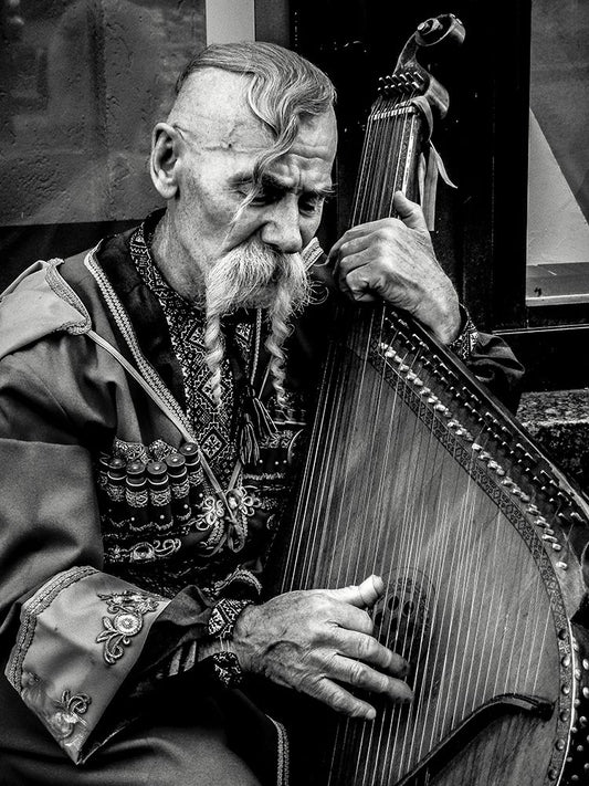 Cossack With Zither - Cosaco Con Citara Black Ornate Wood Framed Art Print with Double Matting by Kustom Shots, Dave