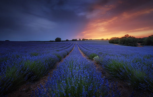 Lavender Field Black Ornate Wood Framed Art Print with Double Matting by Kevin