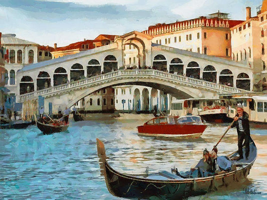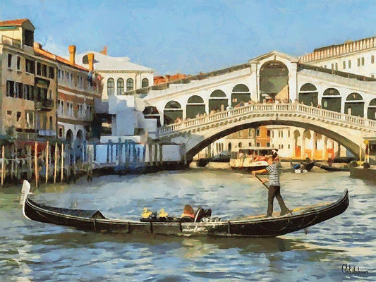 Ponte Rialto I White Modern Wood Framed Art Print with Double Matting by Medeiros, Celito