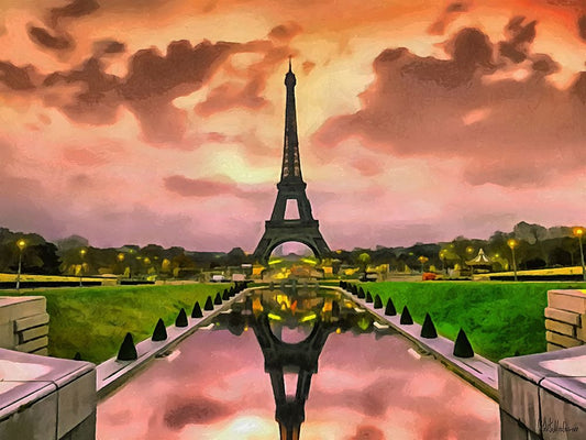 Eiffel Tower in Paris White Modern Wood Framed Art Print with Double Matting by Medeiros, Celito