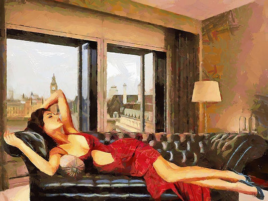 Girl in Red in London White Modern Wood Framed Art Print with Double Matting by Medeiros, Celito