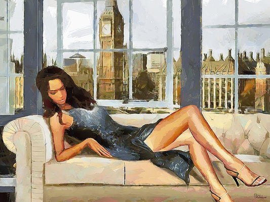 Girl in Silver in London White Modern Wood Framed Art Print with Double Matting by Medeiros, Celito