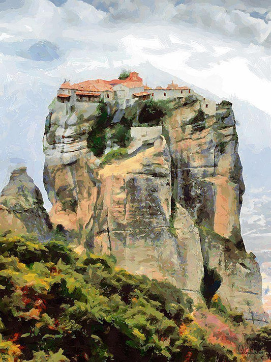 Meteora in Greece White Modern Wood Framed Art Print with Double Matting by Medeiros, Celito