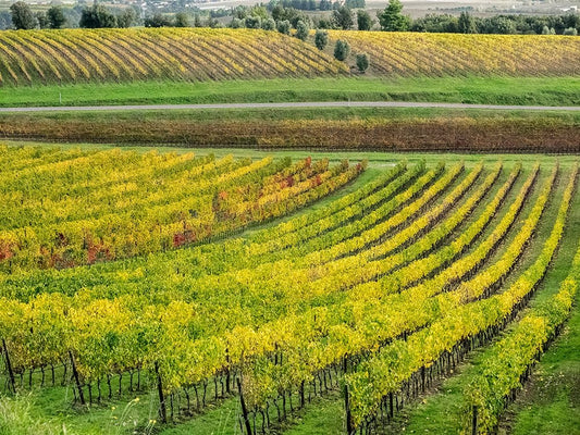 Italy-Tuscany Colorful vineyard in autumn Black Ornate Wood Framed Art Print with Double Matting by Eggers, Julie