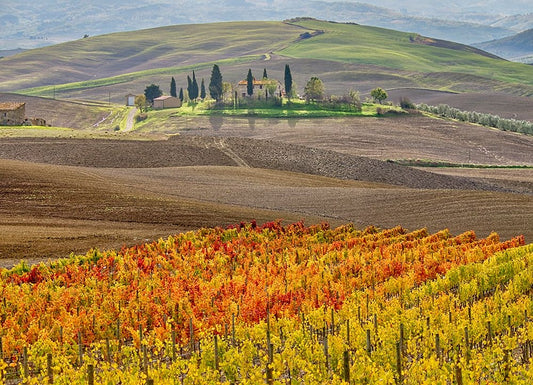 Italy-Tuscany Colorful vineyards in autumn with blue skies and clouds Black Ornate Wood Framed Art Print with Double Matting by Eggers, Julie