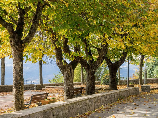 Italy-Tuscany-Radicofani Park setting in the town of Radicofani overlooking the valley below Black Ornate Wood Framed Art Print with Double Matting by Eggers, Julie