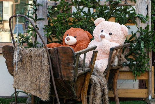 Colmar-France Old town Colmar adorned with Christmas decoration Cozy teddy bears in old wood sleigh Black Ornate Wood Framed Art Print with Double Matting by McRoberts, Julien
