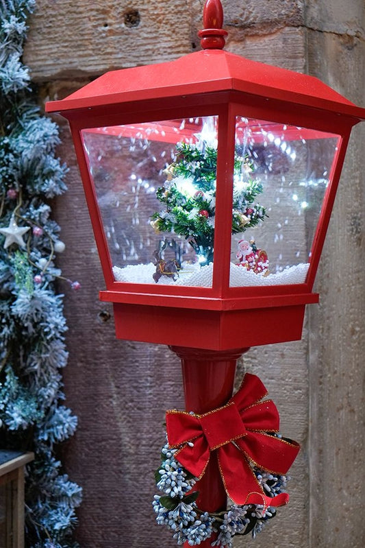 Strasbourg-France Christmas red lamp post with blowing snow inside Black Ornate Wood Framed Art Print with Double Matting by McRoberts, Julien