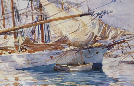 Yachts at Anchor, Palma de Majorca, 1912 Black Ornate Wood Framed Art Print with Double Matting by Sargent, John Singer