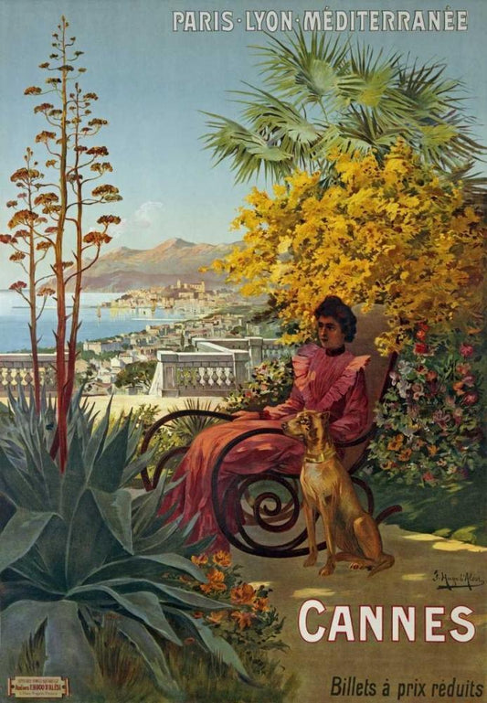 Cannes, P.L.M Black Ornate Wood Framed Art Print with Double Matting by D Alesi, Hugo