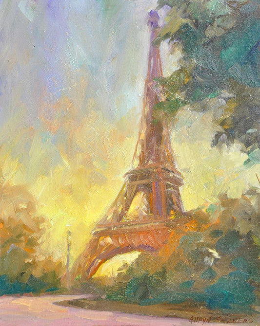 Eiffile Tower Black Ornate Wood Framed Art Print with Double Matting by Stevens, Allayn