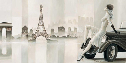 Thoughts of Paris Black Ornate Wood Framed Art Print with Double Matting by Jasper