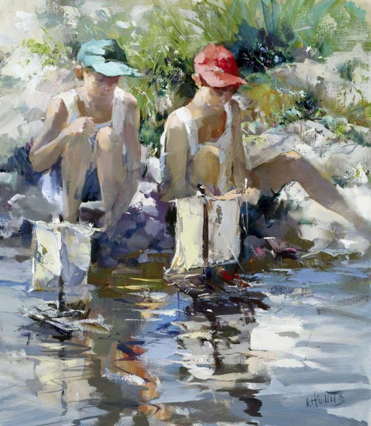 Boys Black Ornate Wood Framed Art Print with Double Matting by Haenraets, Willem