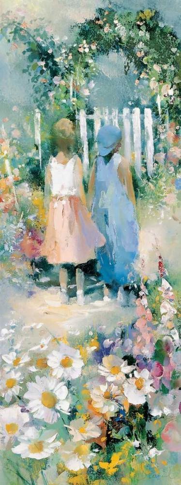Girls Black Ornate Wood Framed Art Print with Double Matting by Haenraets, Willem