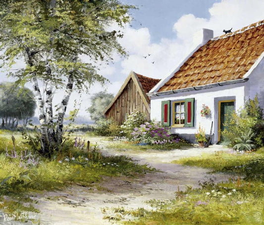 Dutch country scene Black Ornate Wood Framed Art Print with Double Matting by Withaar, Reint