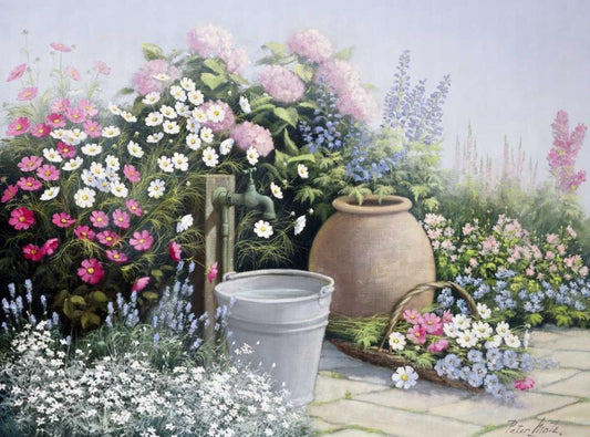 A colourful garden Black Ornate Wood Framed Art Print with Double Matting by Withaar, Reint