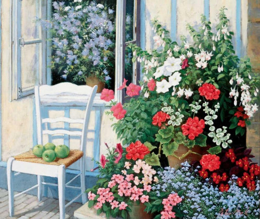 View on my garden Black Ornate Wood Framed Art Print with Double Matting by Motz, Peter