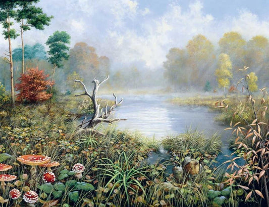 Lakescape Black Ornate Wood Framed Art Print with Double Matting by Motz, Peter