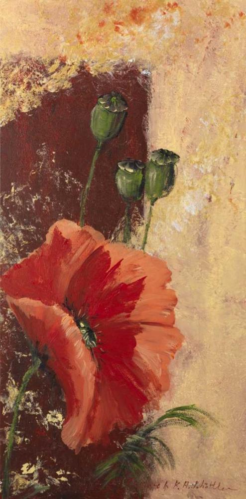 Red poppies composition II Black Ornate Wood Framed Art Print with Double Matting by Schottler, Katharina