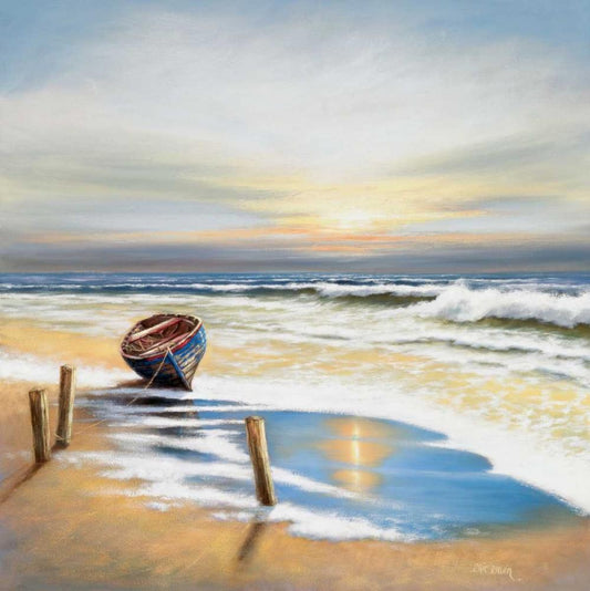 Boat on the shore Black Ornate Wood Framed Art Print with Double Matting by Erwin, Eric