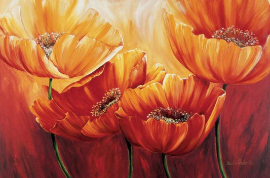 The four poppies Black Ornate Wood Framed Art Print with Double Matting by Frederiks, Beatrix